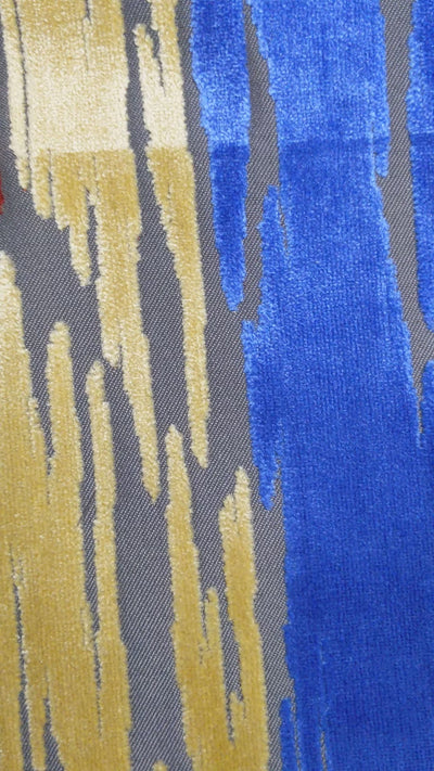 Bold and vibrant, the blue, yellow and orange pillow is a vivid way to decorate your living space. Abstract lines of light blue, dark blue, yellow, and orange are arranged across the pillow in a way that resembles paint brushstrokes. Its crushed velvet material is soft and pleasantly textured.